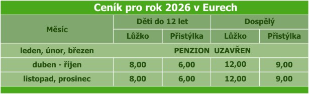 Cena zahrnuje: úklid, povlečení, lázeňský poplatek obci 1,00 EUR na osobu za den, internetové připojení WiFi.